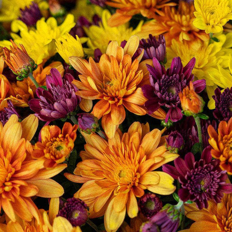 Enjoy hundreds of beautiful purple, orange, and yellow blooms throughout the mid fall season on this large 12 inch "Arluno" potted fall mum with an average spread of 20-24 inches.