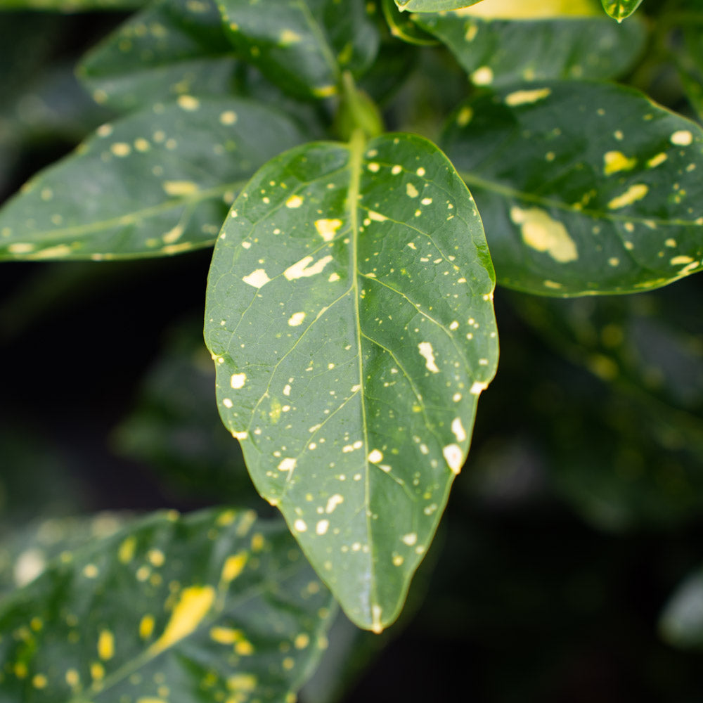 1. Foliage: One of the most distinctive features of Gold Dust Aucuba is its bold and attractive foliage. The leaves are leathery, glossy, and have a gold speckling or variegation. The green background with yellow spots gives the plant a unique appearance.