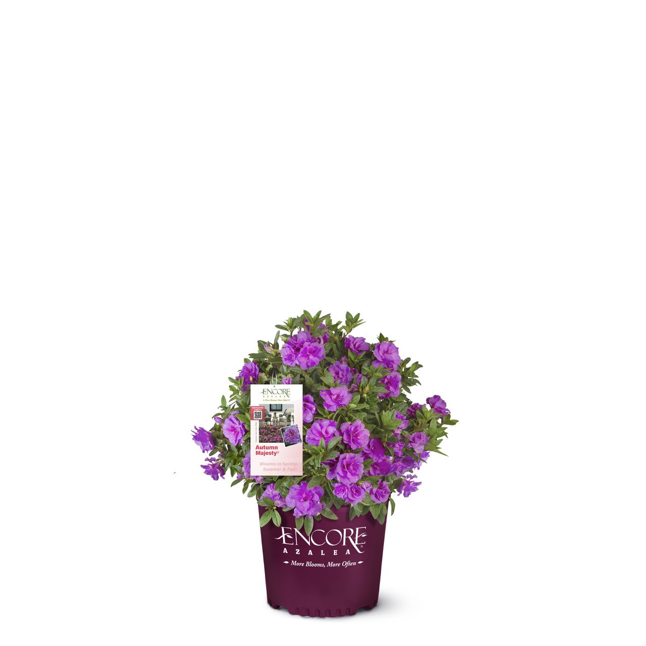 The Azalea Encore Autumn Majesty (Rhododendron hybrid 'Roblezd') is a captivating, low-maintenance shrub that features vibrant, bright purple blooms from spring through fall. Its dense evergreen foliage and compact growth make it an excellent choice for adding bold, regal color and seasonal appeal to your landscape with minimal effort.