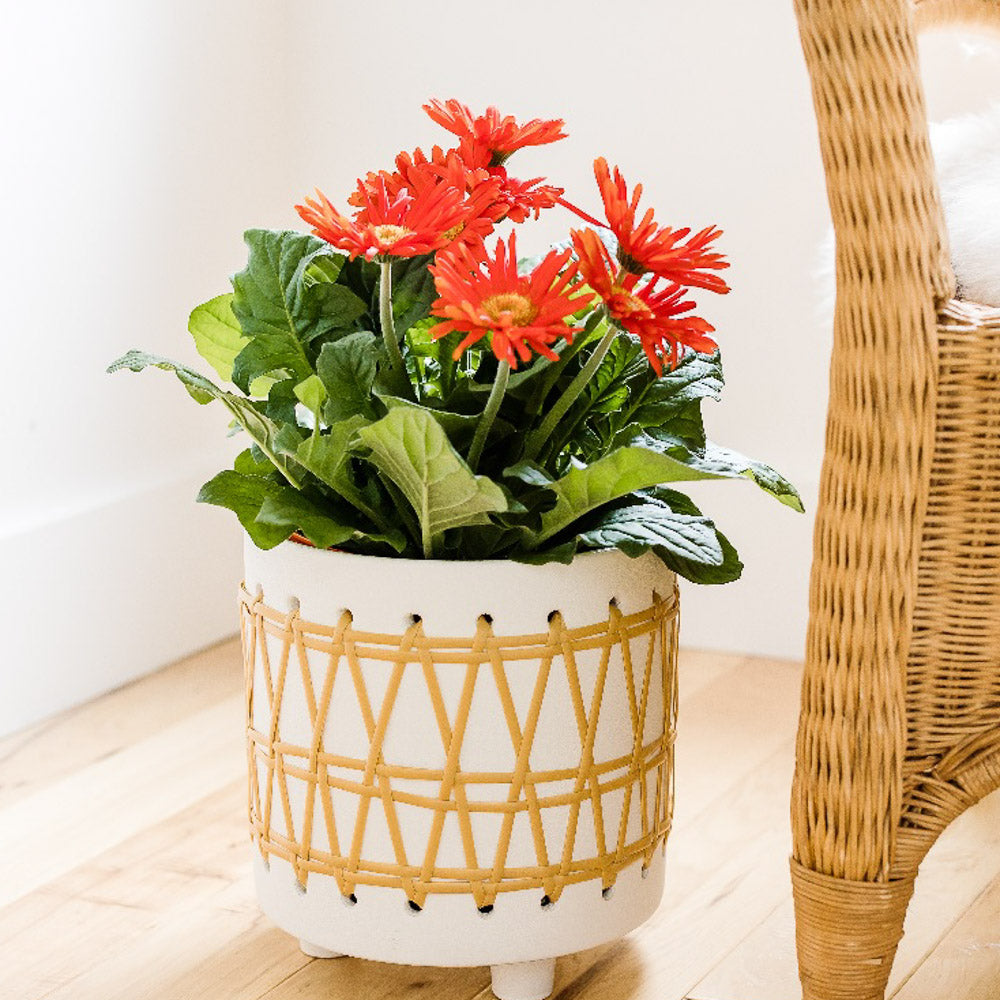 Pottery Rattan Cylinder White 6