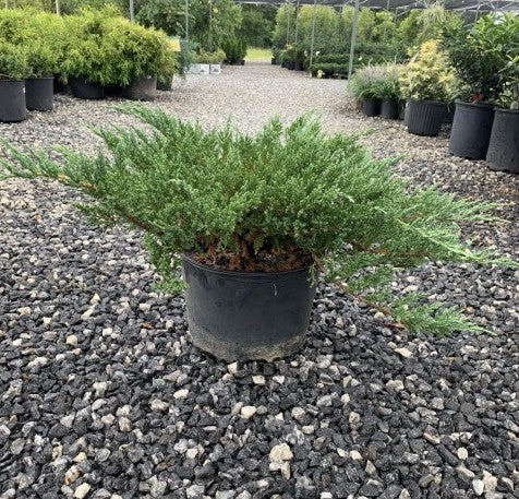 2. Size: This juniper typically grows to a height of 1 to 2 feet with a spread of 6 to 8 feet, forming a low, spreading mound. Its compact size and spreading habit make it an excellent choice for ground cover in gardens, borders, and rockeries.